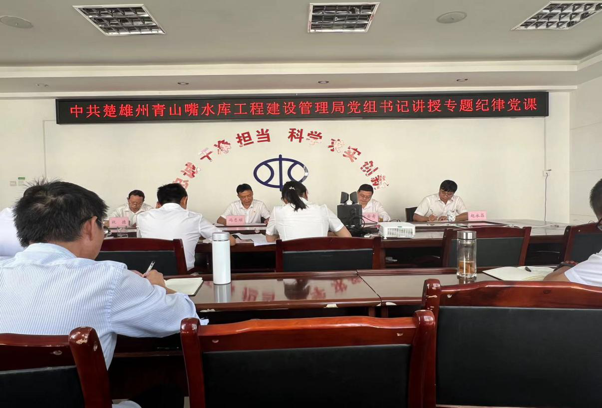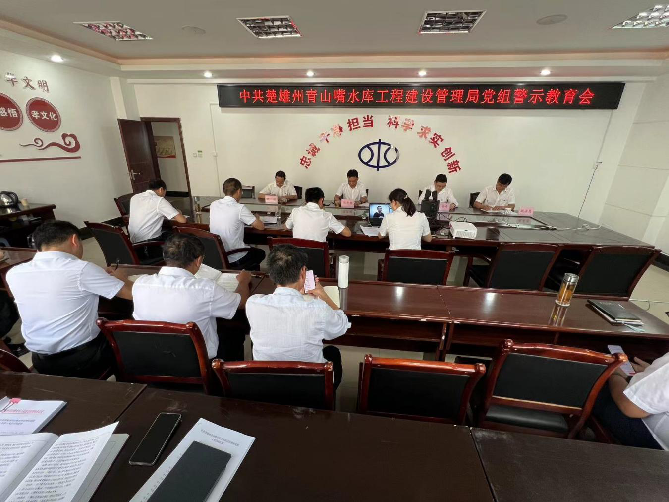 6月28日,楚雄州青山嘴水库工程建设管理局召开警示教育会议,传达学习贯彻习近平总书记关于全面加强党的纪律建设的重要论述,观看警示教育片,通报典型案例,深化以案示警、以案释纪、以案促治,纵深推进“清廉楚雄”建设在管理局走深走实。局党组书记、局长冯忠顺主持会议并讲授纪律党课,驻州自然资源与规划局纪检监察组相关领导出席会议。
