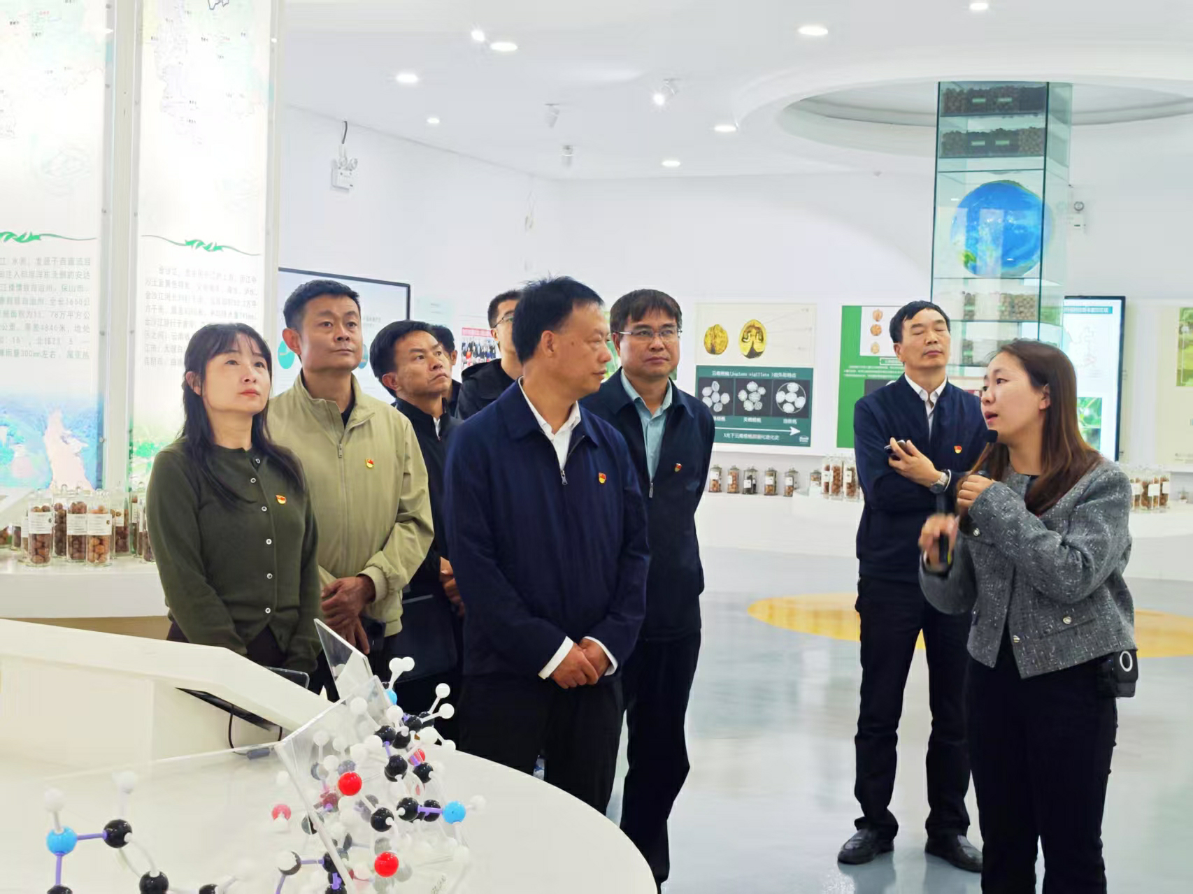在讲解员的引领下,中共楚雄州青山嘴水库工程建设管理局机关党支部的党员们有序参观了植物馆、核桃博物馆、企业馆等特色展馆。展厅内,丰富多元的实物展品、图文并茂的资料展示与细致入微的专业讲解相互交融,全方位、多层次地呈现出摩尔农庄的现代化产业布局、艰苦创业的发展历程,以及核桃全产业链的前沿科技成果和深厚文化底蕴。