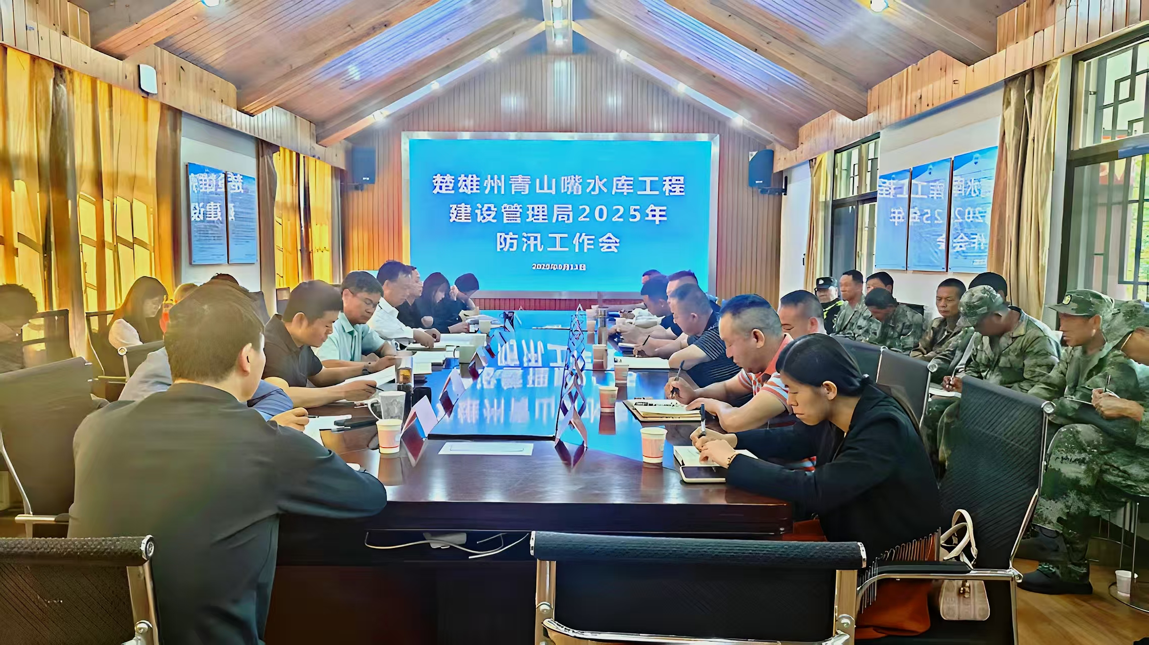 2025年6月11日,楚雄州青山嘴水库工程建设管理局在青山嘴水库二楼调度中心召开2025年度防汛工作会议,贯彻习近平总书记防汛救灾指示精神及省、州部署安排,总结 2024 年工作,分析形势,部署 2025 年重点任务,保障水库安全与下游人民群众财产安全。