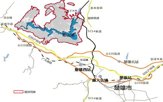 青山湖周边资源丰富,有着无法复制的生态美景和绚丽多彩的民俗文化资源。龙川江水一线西来,犹如一条巨龙在大坝处洄旋,碧波荡漾,波光潋滟。周边有大面积的森林草甸、平坝梯田风光。远处可见紫溪山、情人谷、哀牢山、西山。特色民居庭院、彝族村落依山而居。历史上的红色文化、彝族水文化等文化遗存也沉淀于此,彝族的火把节、赛装节、咪依噜、彝族传统仪式带来别样的风情感受,给秀美绝佳、湖光山色的青山湖赋予了生命色彩。青山湖水利风景区主打生态水利观光、彝族水文化体验和健康山地运动,与周边的彝人古镇和紫溪山森林公园在功能上形成了很好的良好互补关系。